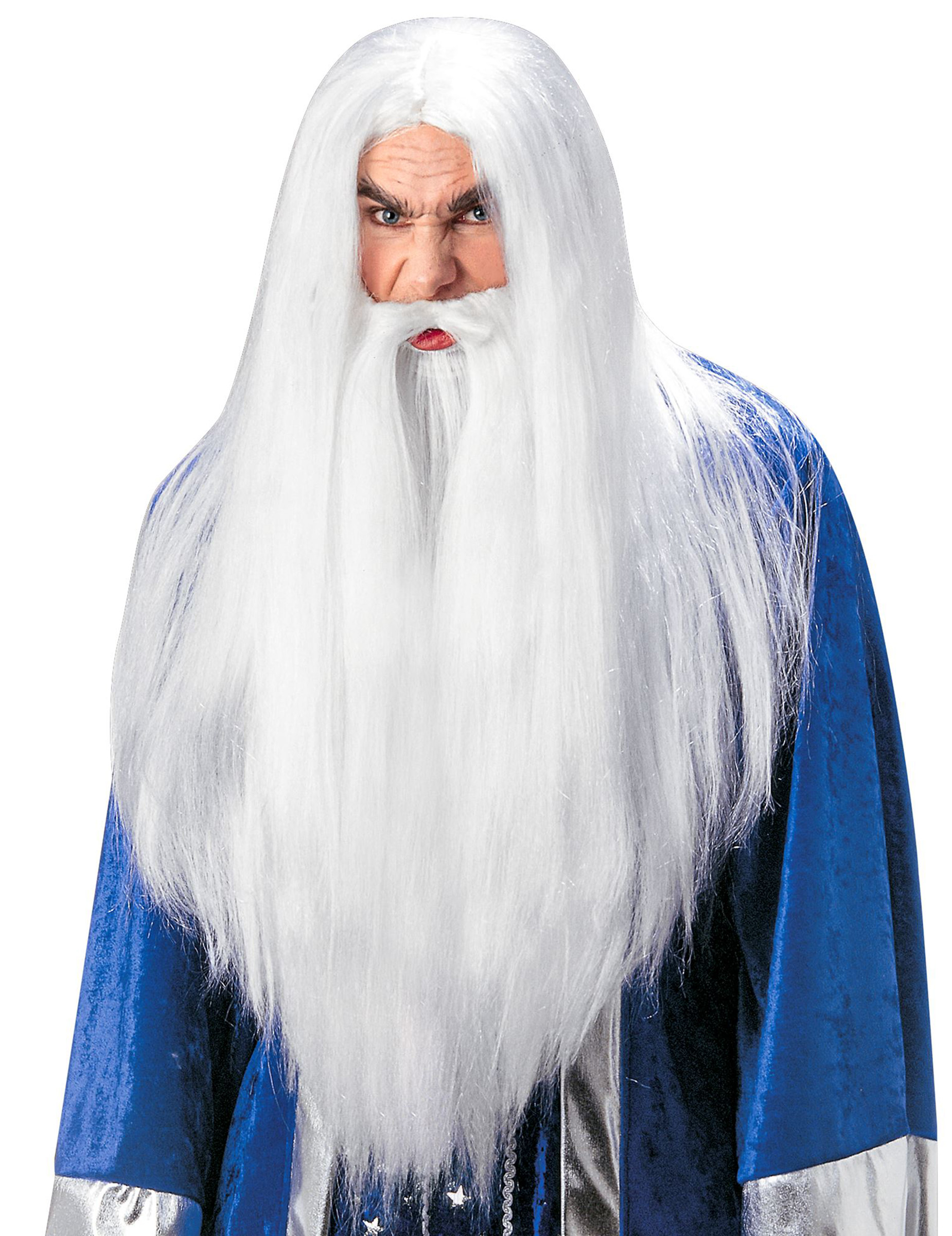 Perruque et barbe druide blanc